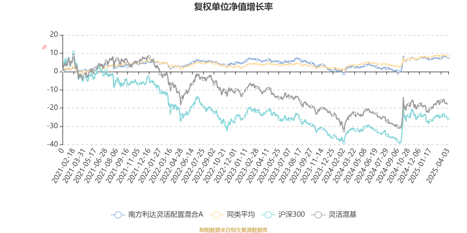 截至4月3日,南方利达灵活配置混合A近三个月复权单位净值增长率为0.64%,位于同类可比基金63/155;近半年复权单位净值增长率为0.32%,位于同类可比基金111/155;近一年复权单位净值增长率为5.02%,位于同类可比基金55/155;近三年复权单位净值增长率为4.46%,位于同类可比基金81/154。