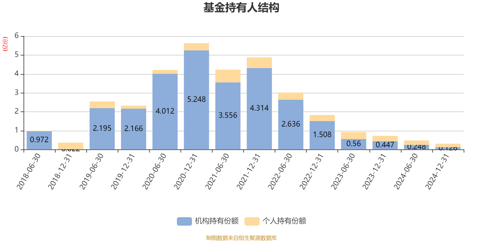 截至2024年12月31日,基金持有人共计4404户,合计持有3085.28万份。其中管理人员工持有10.01万份,占比0.32%,机构持有份额占比40.94%,个人投资者占比59.06%。
